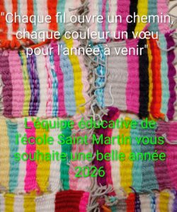 By Angélique GARREAU7 janvier 2026CE1/CE2, CE2/CM1, CM2, GS/CP, les associations OGEC et "Petits et Grands", TPS/PS/MS oeuvre de tissage réalisée par la classe de CM2 lors des ateliers inter-générationnels avec les résidents de « La Rive de l’Auxence »